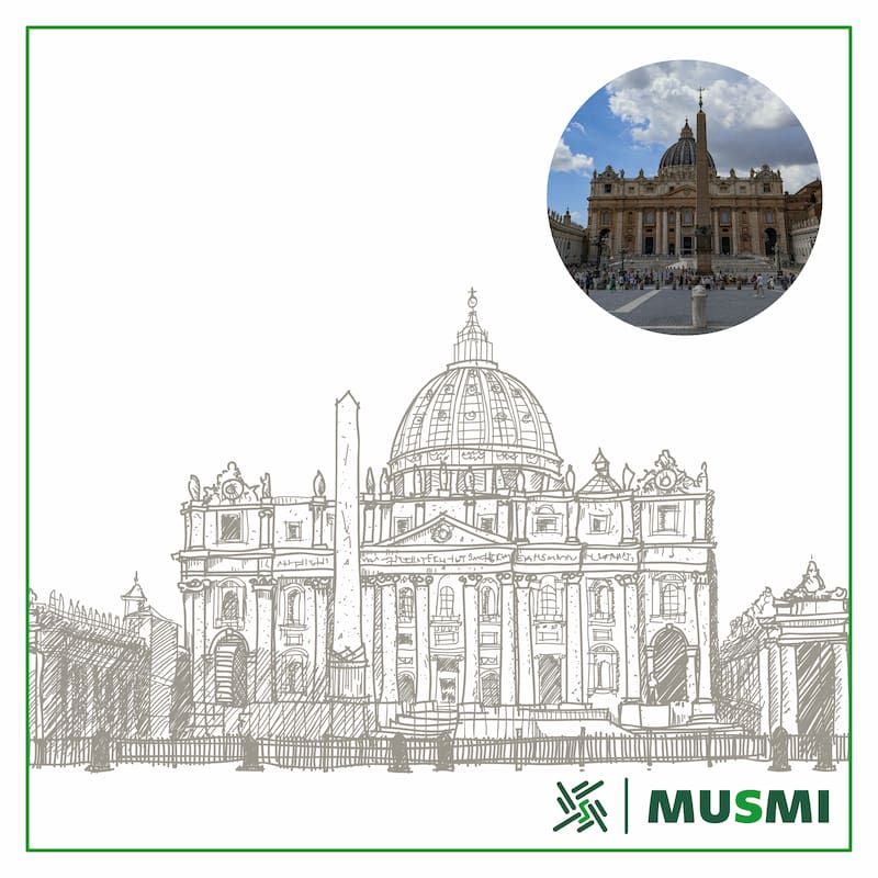 En la imagen se muestra la Plaza de San Pedro, que es el corazón del Vaticano, un espacio emblemático donde se encuentran: La Basílica de San Pedro, la Columnata de Bernini y el Obelisco Vaticano.