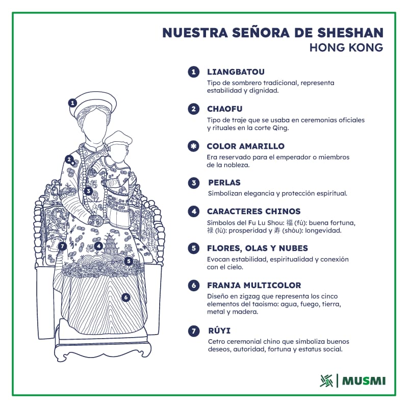 Advocación mariana venerada en el santuario de Sheshan, en Shanghái, China. Surgió en el siglo XIX con la labor de misioneros jesuitas y muestra a la Virgen con el Niño Jesús, ambos con vestimenta tradicional china; convirtiéndose en símbolo de esperanza y fe para los católicos chinos, especialmente durante tiempos de persecución religiosa.