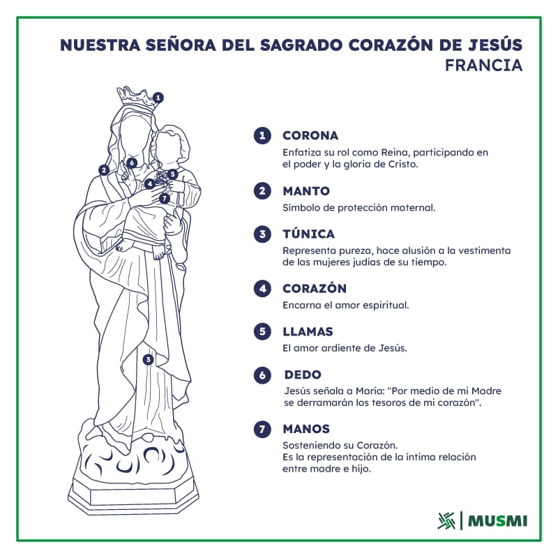 Advocación mariana de tipo iconográficas, originada en Francia en el siglo XIX, promovida por los Misioneros del Sagrado Corazón. Representa a María mostrando el corazón de su hijo, destacando su papel como intercesora que guía a los fieles hacia el amor de Cristo. Su devoción se expandió rápidamente por Europa y América, consolidándose como símbolo de consuelo, confianza y amor maternal.