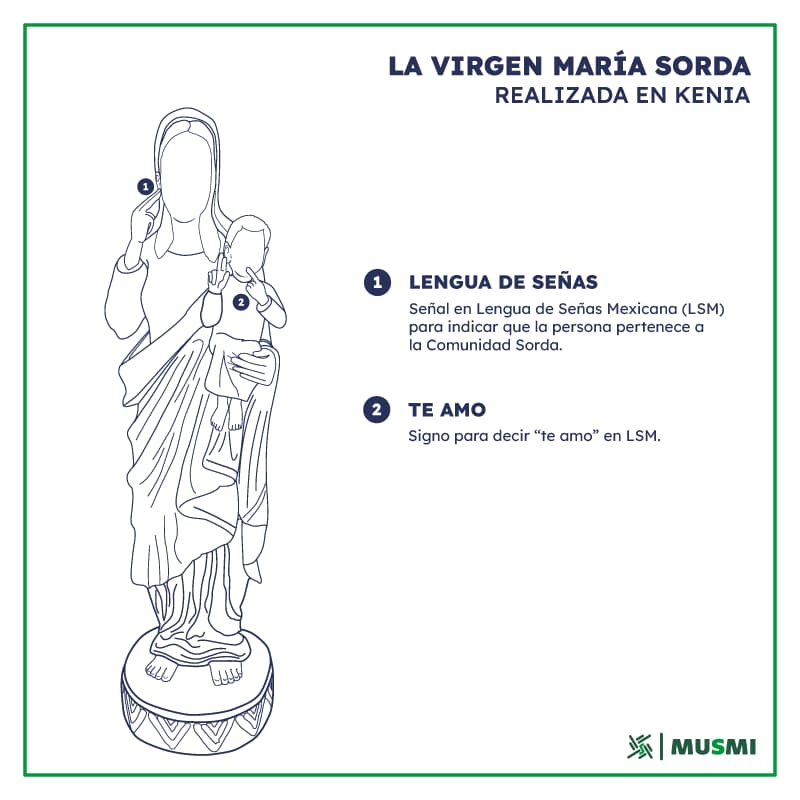 La Virgen Sorda es una advocación mariana nacida desde la experiencia de la Comunidad Sorda, como respuesta a su exclusión de espacios religiosos orales. Reconoce la Lengua de Señas como forma válida de oración, mostrando a una Virgen que “ve” y comprende el silencio. Hoy es un símbolo de inclusión, dignidad y orgullo para las personas de la Comunidad Sorda en México.
