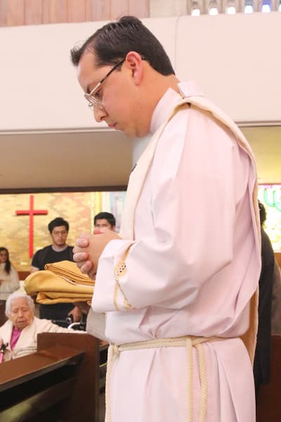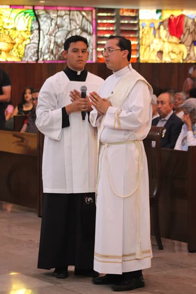 Antes de comenzar la homilía, Moisés fue presentado a Mons. Luis Manuel por el P. Alberto Puente Colunga, MG, mientras que el P. Eugenio Z. Romo lo declaró digno de recibir el grado del presbiterado.