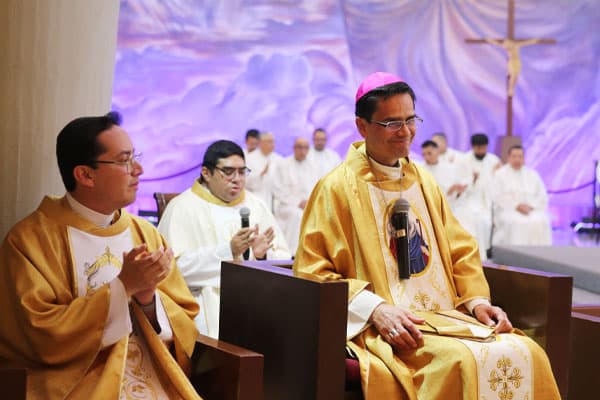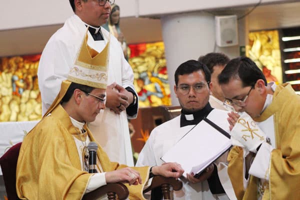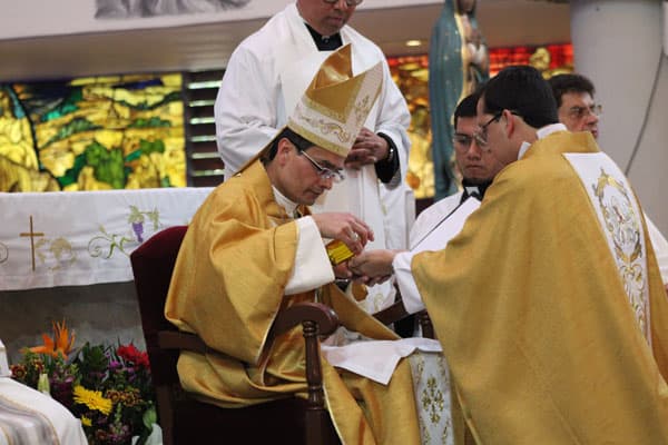 “La Iglesia, representada en esta asamblea, orará por ti y serás consagrado por el Espíritu Santo para enseñar, santificar y apacentar al pueblo de Dios siendo presencia viva de Jesús en el mundo y en la Iglesia, y respondiendo cada día de tu vida, no solo hoy, con la misma convicción, el mismo vigor, el mismo amor que el profeta ‘Aquí estoy, Señor, envíame’.”