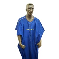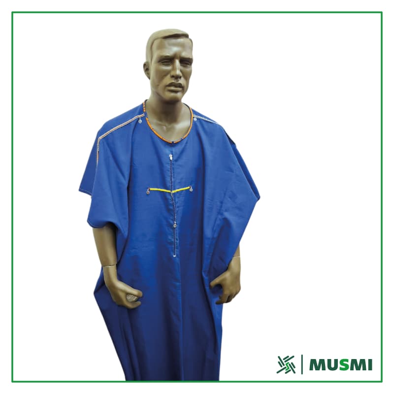 Esta pieza fue inculturada al contacto con la comunidad maasai, integrando su estética y espiritualidad. El color azul del tejido representa al cielo, a la lluvia y a la protección divina; el amarillo y el naranja de las cuentas expresan hospitalidad, y el blanco simboliza paz y pureza.