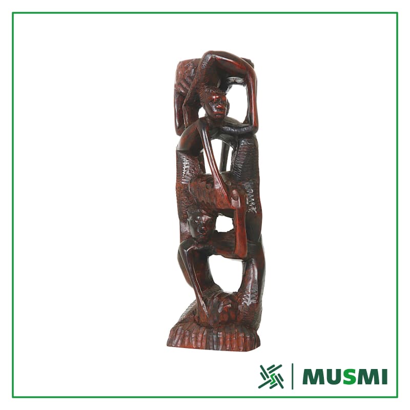 Ujamaa es una palabra en swahili, una lengua de África cuyo significado se podría traducir como “hermandad” o “familia”, por lo que, a esta pieza, obra de la tribu makonde, se le conoce como Árbol de la familia. Los makonde se encuentran al sur de Tanzania y al norte de Mozambique. Sus ujamaas, tallados sobre un solo bloque de ébano, representan la unión y solidaridad de su pueblo, a través de la imagen de una multitud que parece enredarse entre sí. De esta manera, el concepto del ujamaa encierra un significado filosófico, social y hasta económico muy importante, ya que habla de los principios de la colectividad africana, profundamente marcada por la cooperatividad.