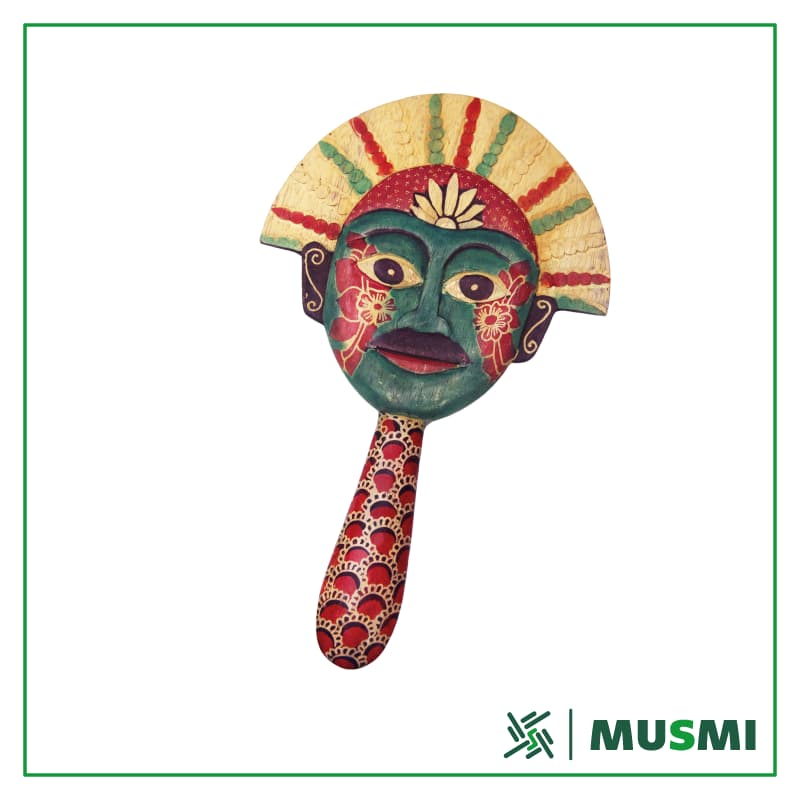 Este espejo representa a los ondel-ondel, títeres gigantes tradicionales de la región de Yakarta en Indonesia que alcanzan hasta 4 metros de altura; construidos con bambú y papel maché, representan figuras humanas, a menudo grotescas y con grandes ojos y bocas abiertas.
