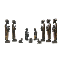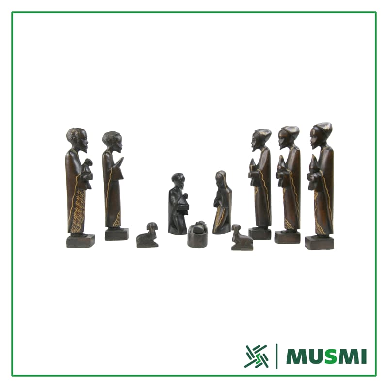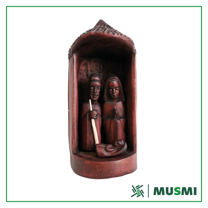 Usando el recurso de tallado de madera, artesanos reflejan su fe por medio de representaciones de la Sagrada Familia. los nacimientos de país están hechos en una sola pieza tallada a mano en madera, un oficio milenario que se sigue practicando en algunas regiones de África.