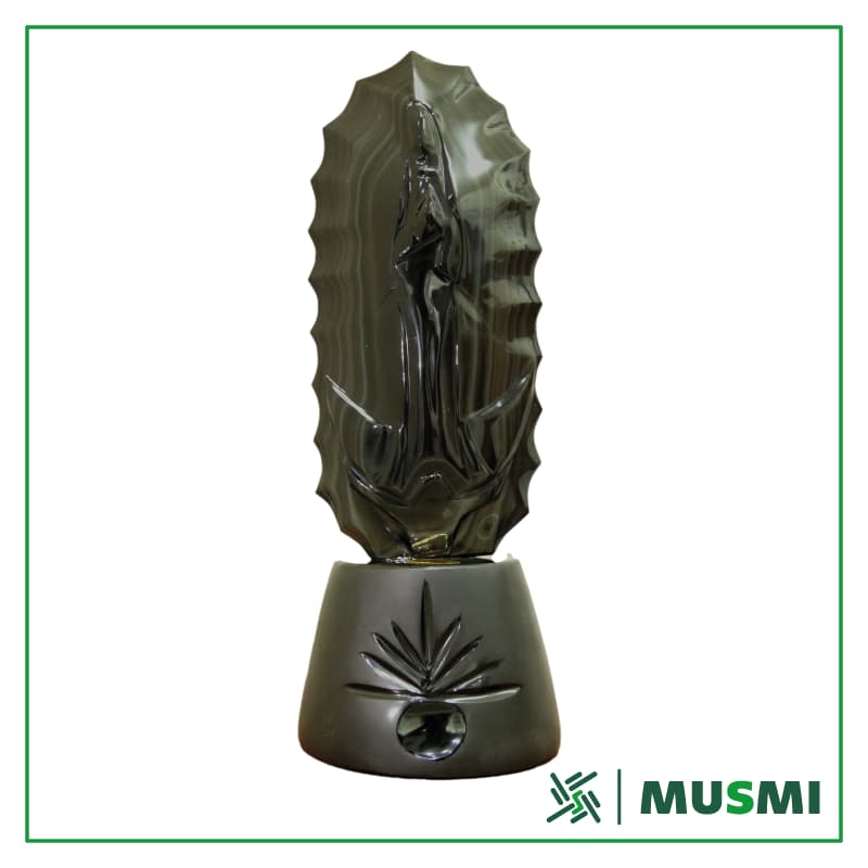 Escultura de la Virgen de Guadalupe tallada a mano en obsidiana. Autor: Elías Aguirre, escultor originario de Tequila, Jalisco.