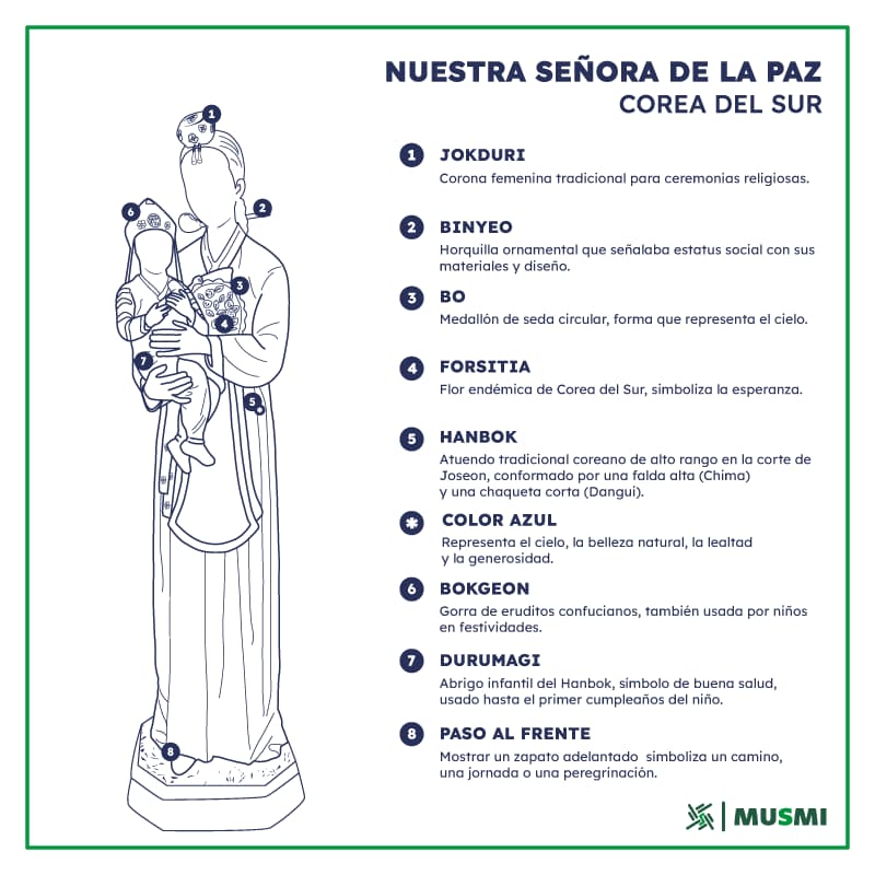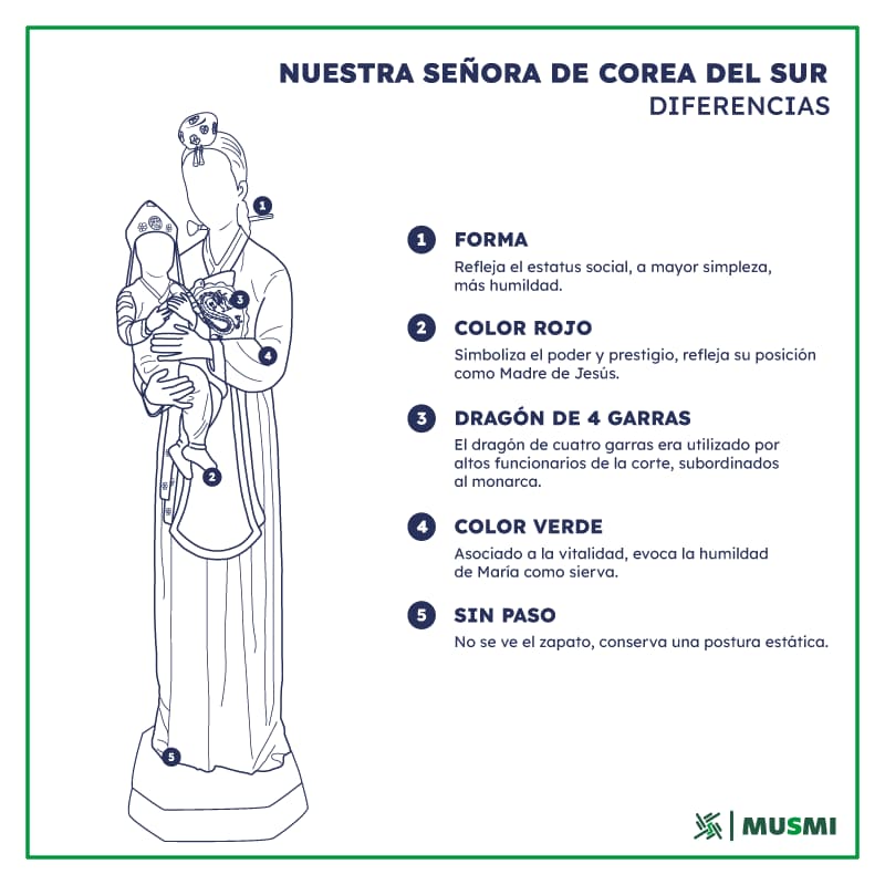 Fue la primera representación mariana concebida localmente en el contexto católico del país. Surgió como un símbolo de fe en medio de una sociedad en transformación, reflejando los valores tradicionales coreanos. Con el tiempo, y ante los cambios sociales, políticos y culturales de Corea del Sur, esta imagen evolucionó hacia la advocación de Nuestra Señora de la Paz, adaptando su mensaje a las nuevas realidades del pueblo coreano.