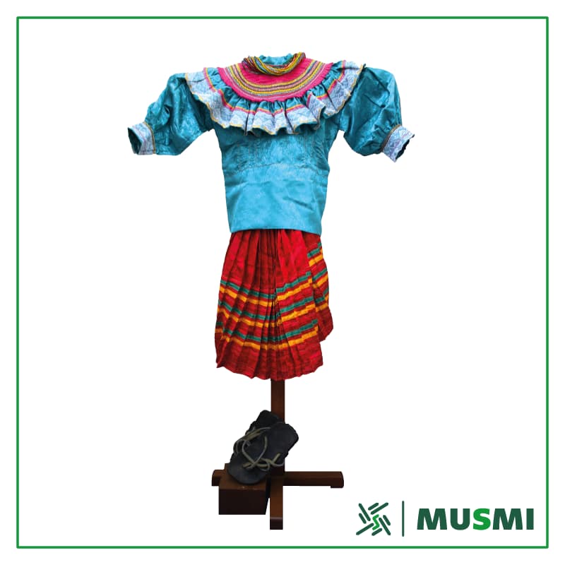 La identidad cultural de una nación se aprecia a través de los elementos propios de su vestimenta típica, como observamos en las siguientes piezas: Traje típico de mujer del municipio de Chiquimula, Guatemala, compuesto de una blusa con volantes en la parte superior y falta tableada.